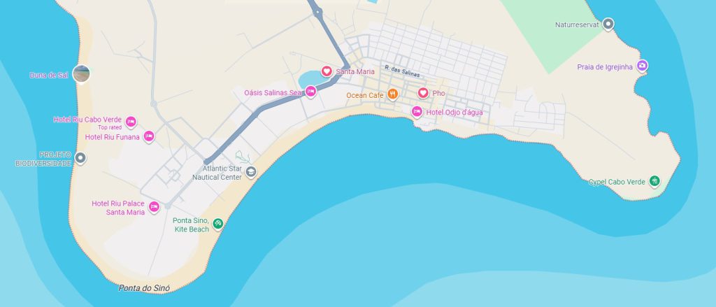 Largely centred around the fantastic beach of Santa Maria. There are beaches both in the town and to the east and west of the town centre.